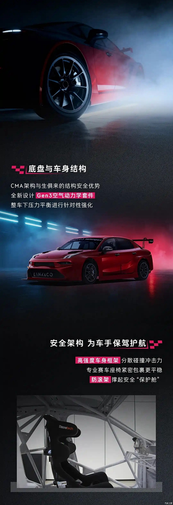 外观方面,领克03+TCR赛车采用了全新设计Gen3空气动力学套件,对整车下压力平衡进行针对性强化。车身侧面也采用了轻量化的轮圈。同时,车辆制动系统采用前六活塞一体式卡钳(380mm)制动盘,后两活塞(290mm)制动盘。车辆尾部同样是采用轻量化的后包围,同时换装更大尺寸的后扰流板。此外,车内还将配备防滚架以及专业赛车座椅。