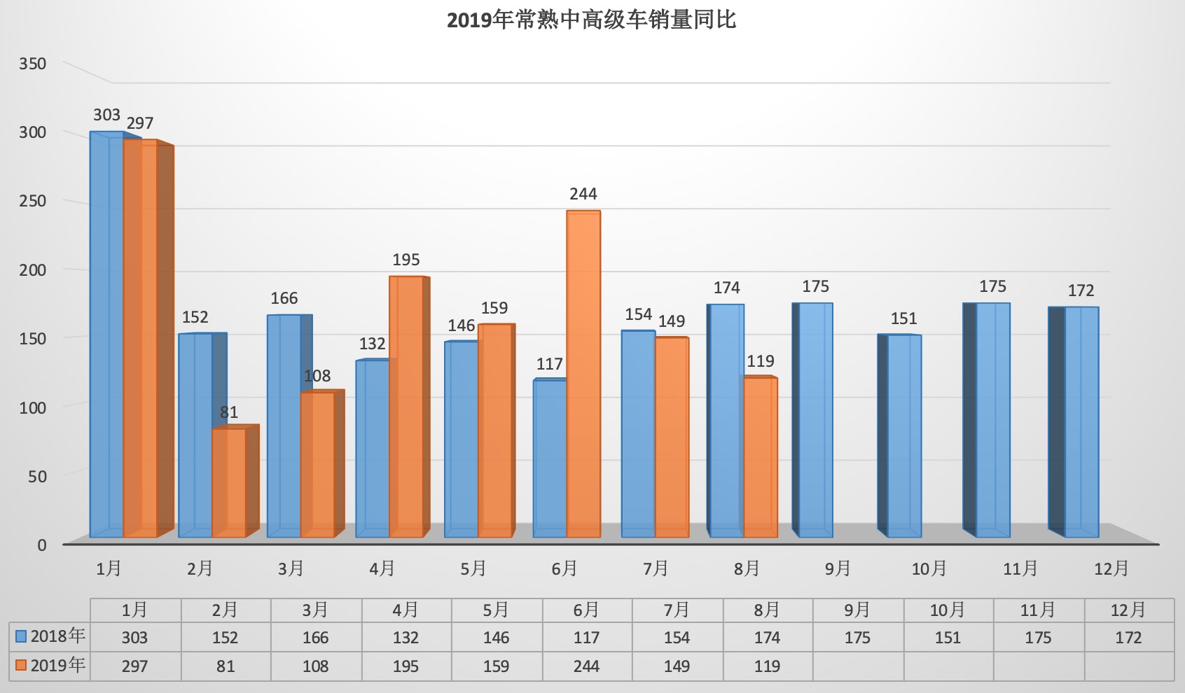 [常熟车城讯] 2019年8月常熟狭义乘用车销量2816台同比下滑22.47%,环比下降16.54%。2019年1-8月总销量同比增长2.82%。1-8总销量中自主品牌同比下降7.16%,美系品牌同比下降12.34%,韩系品牌同比下降26.82%,欧系车同比增长2.32%。德系增长6.48%,日系以20.80%的增长收缩了快速增长的势头。