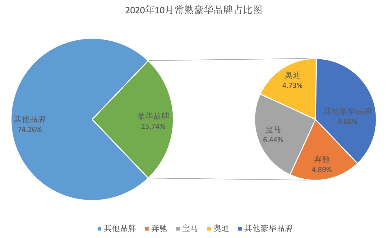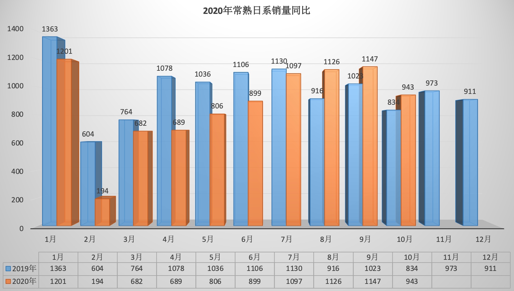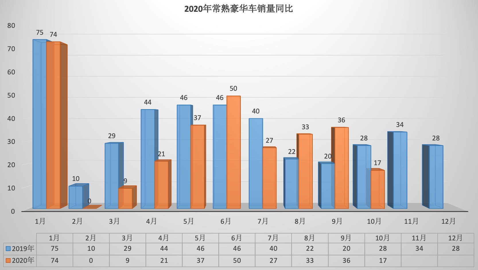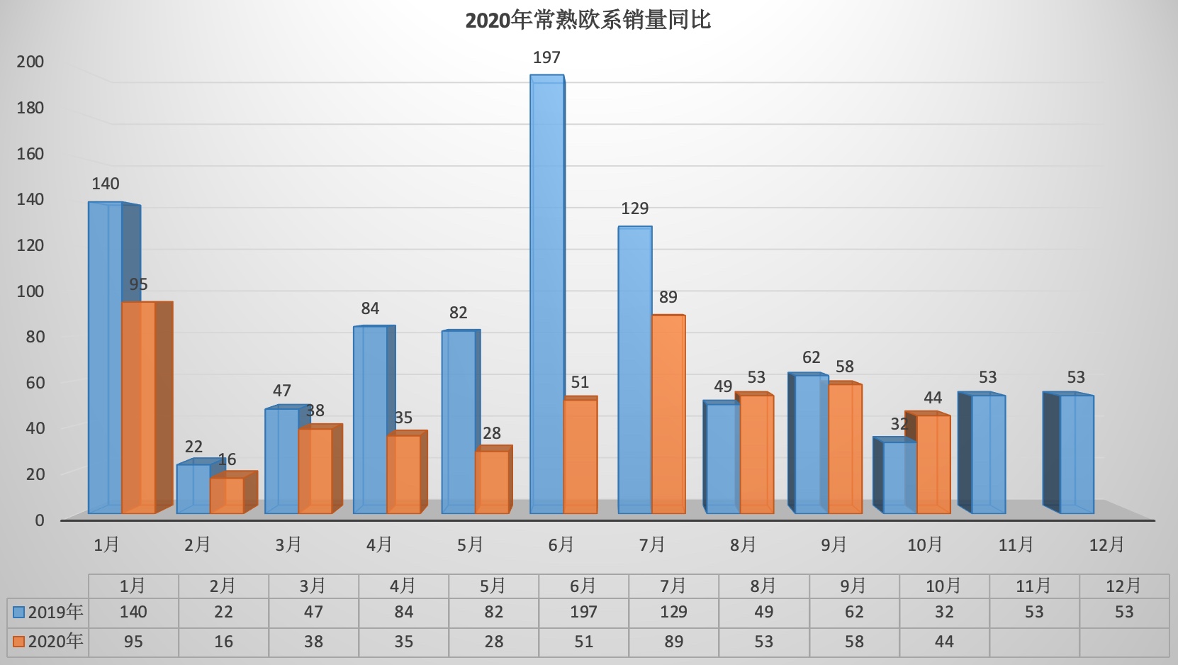 2020年10月常熟狭义乘用车销量3232台同比增长8.68%,环比下降14.07%。1-10月常熟狭义乘用车总销量29326台,同比下降13.26%。10月销量中自主品牌同比增长5.98%,美系品牌同比增长34.38%,韩系品牌同比下降23.15%,欧系车同比增长37.50%,德系同比增长1.20%,日系同比增长13.07%。