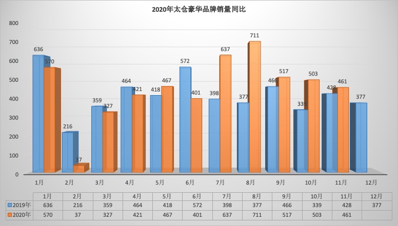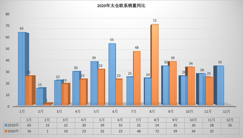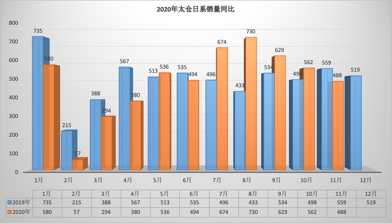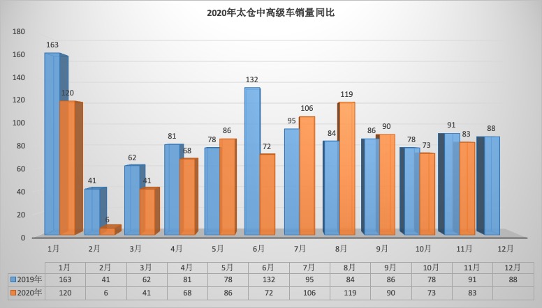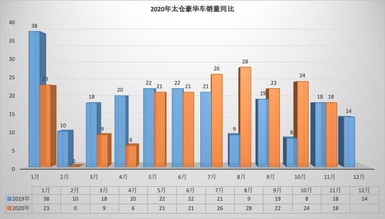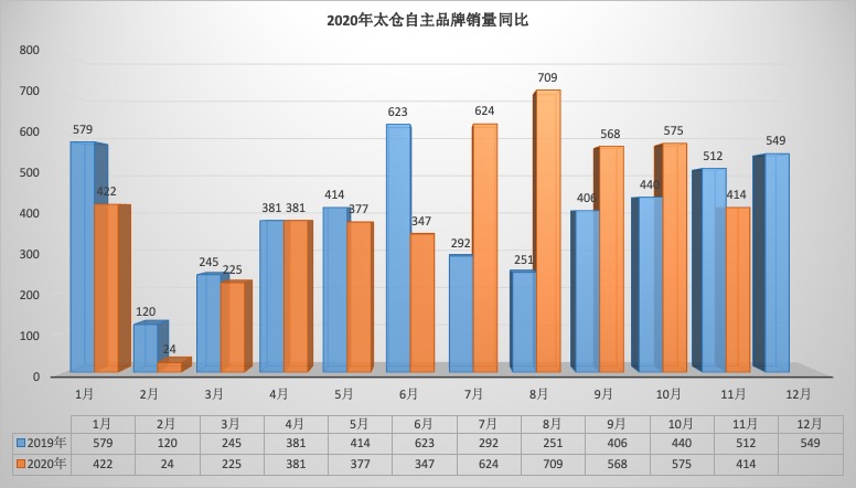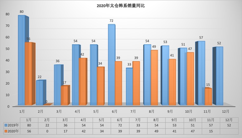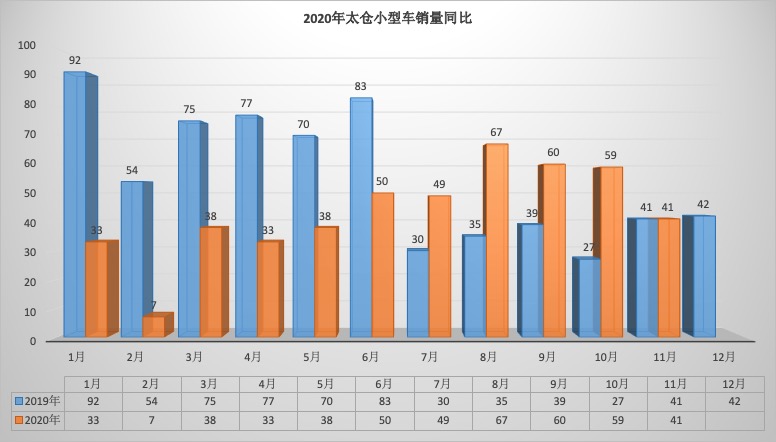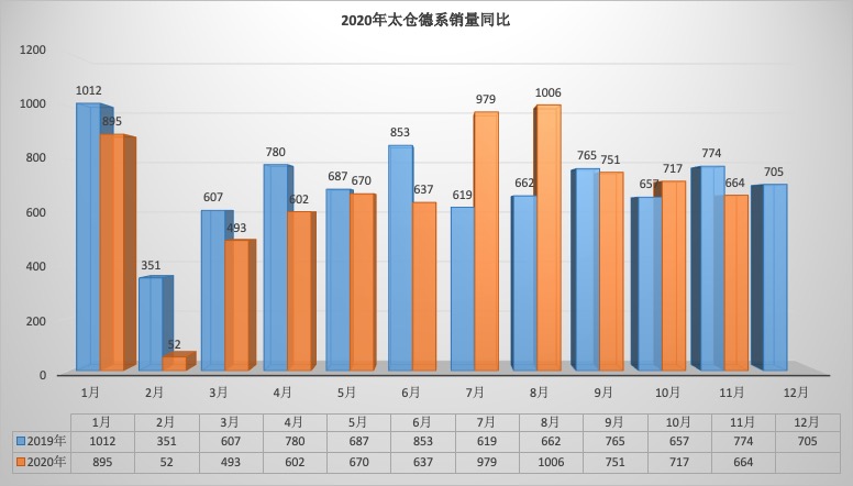 2020年11月太仓狭义乘用车销量1824台同比下降16.56%,环比下降16.10%。1-11月太仓狭义乘用车总销量20657台同比下降1.25%。11月销量中自主品牌同比下降19.14%,美系品牌同比下降14.84%,韩系品牌同比下降73.68%,欧系车同比下降10.71%,德系同比下降14.21%,日系同比下降12.70%。