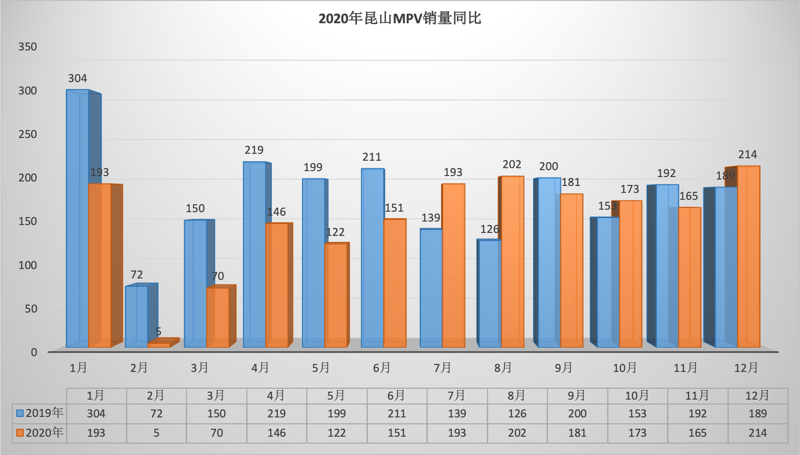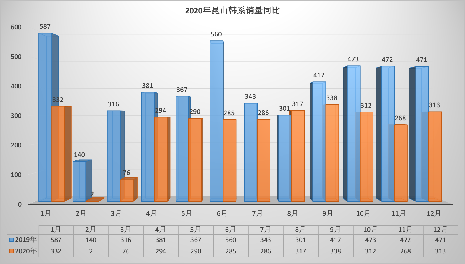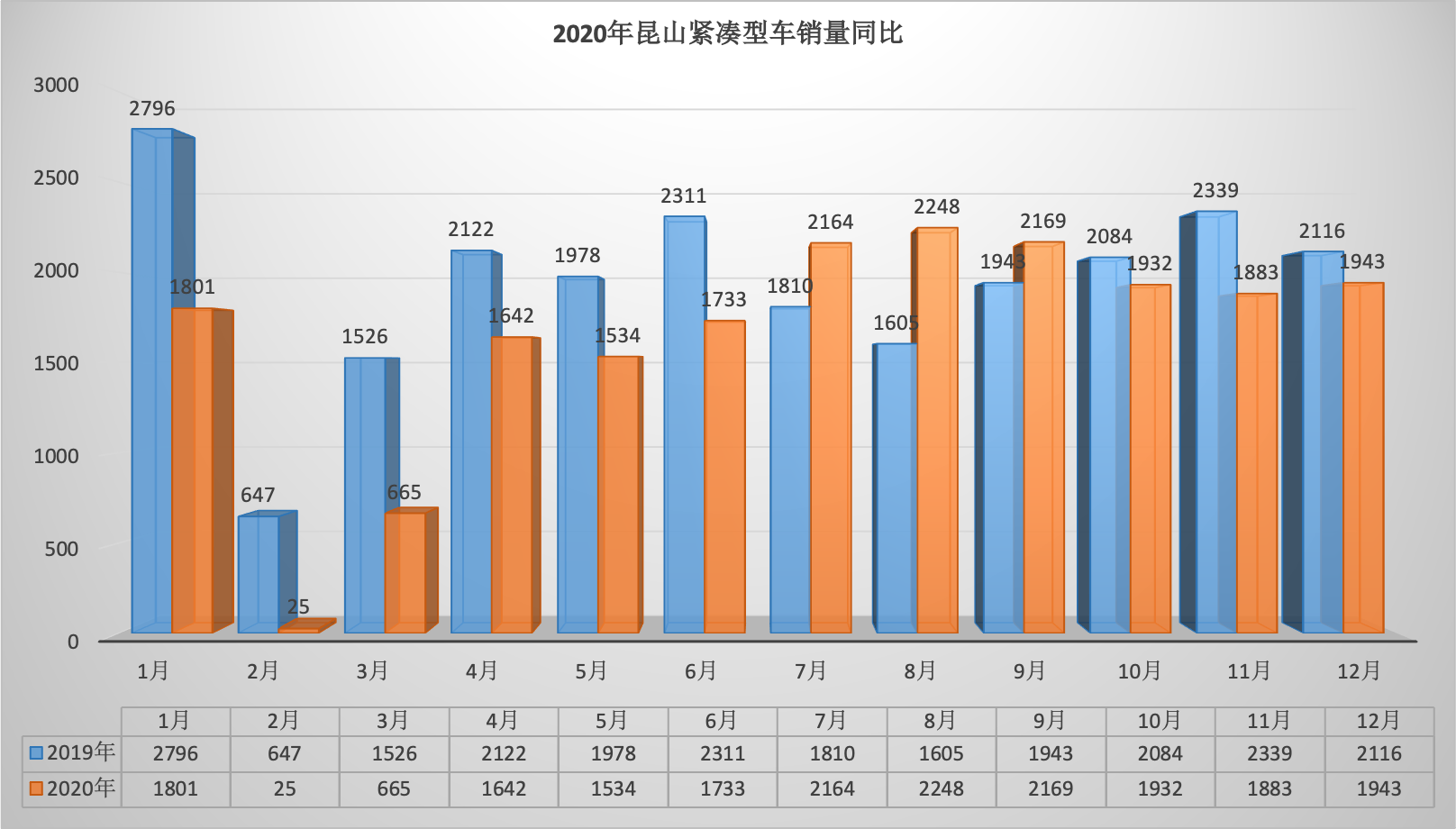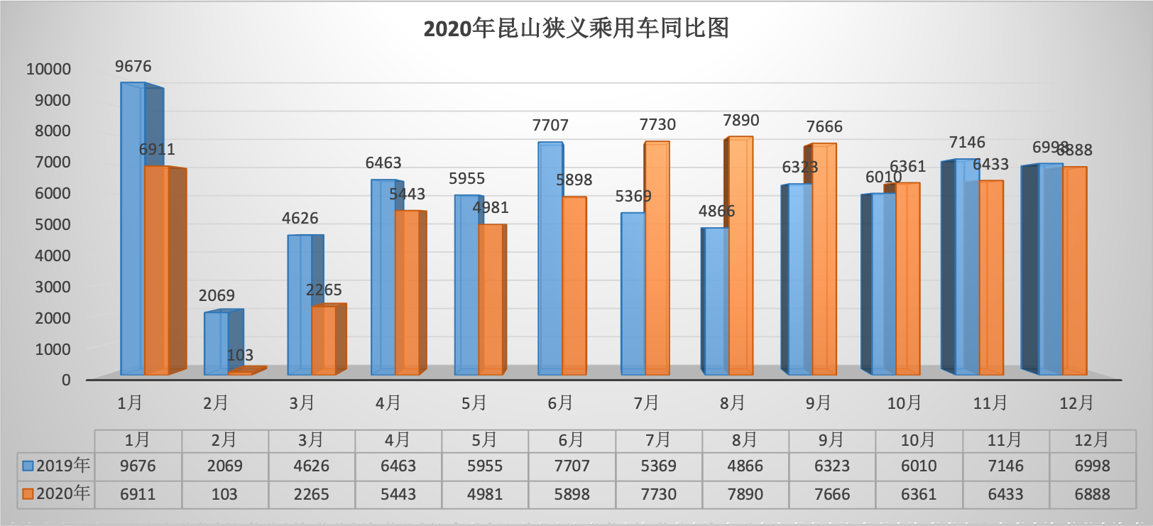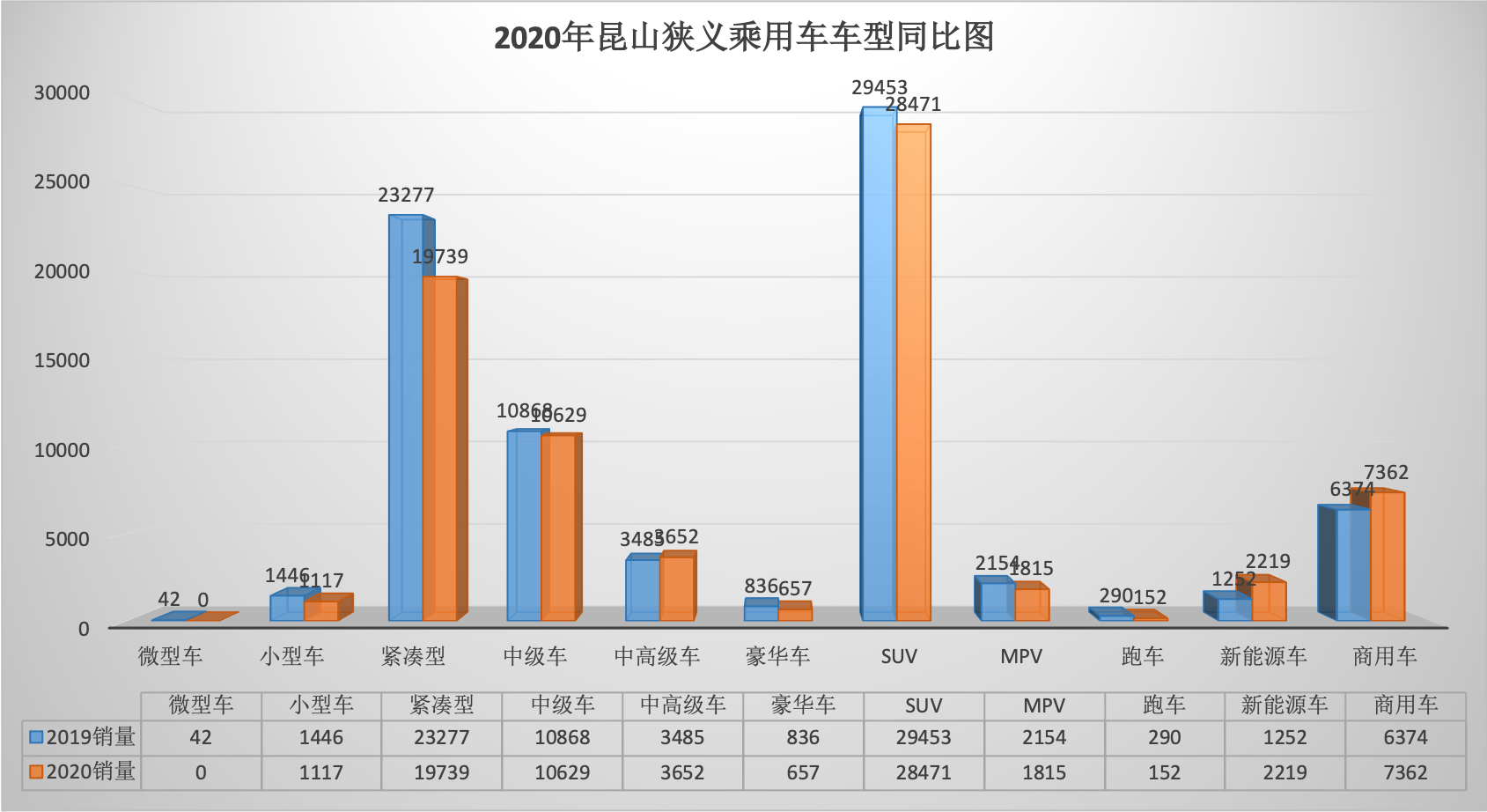 2020年全年昆山狭义乘用车总销量68569台同比下降6.34%。12月昆山狭义乘用车销量6888台,同比下降1.57%,环比增长7.07%。全年销量中自主品牌同比下降5.92%,美系品牌同比增长3.01%,韩系品牌同比下降35.52%,欧系车同比下降7.88%,德系同比下降8.87%,日系同比增长2.51%。