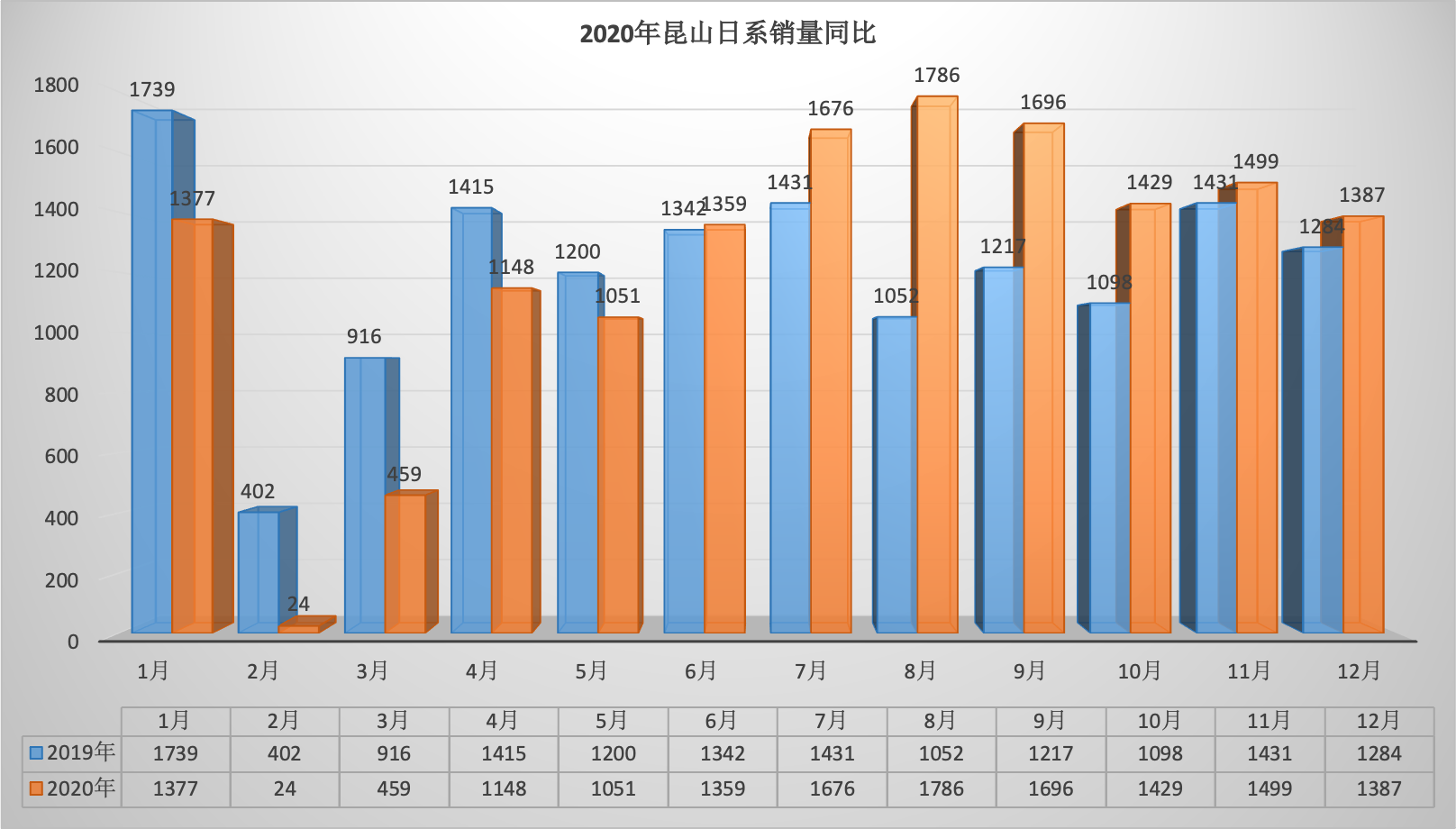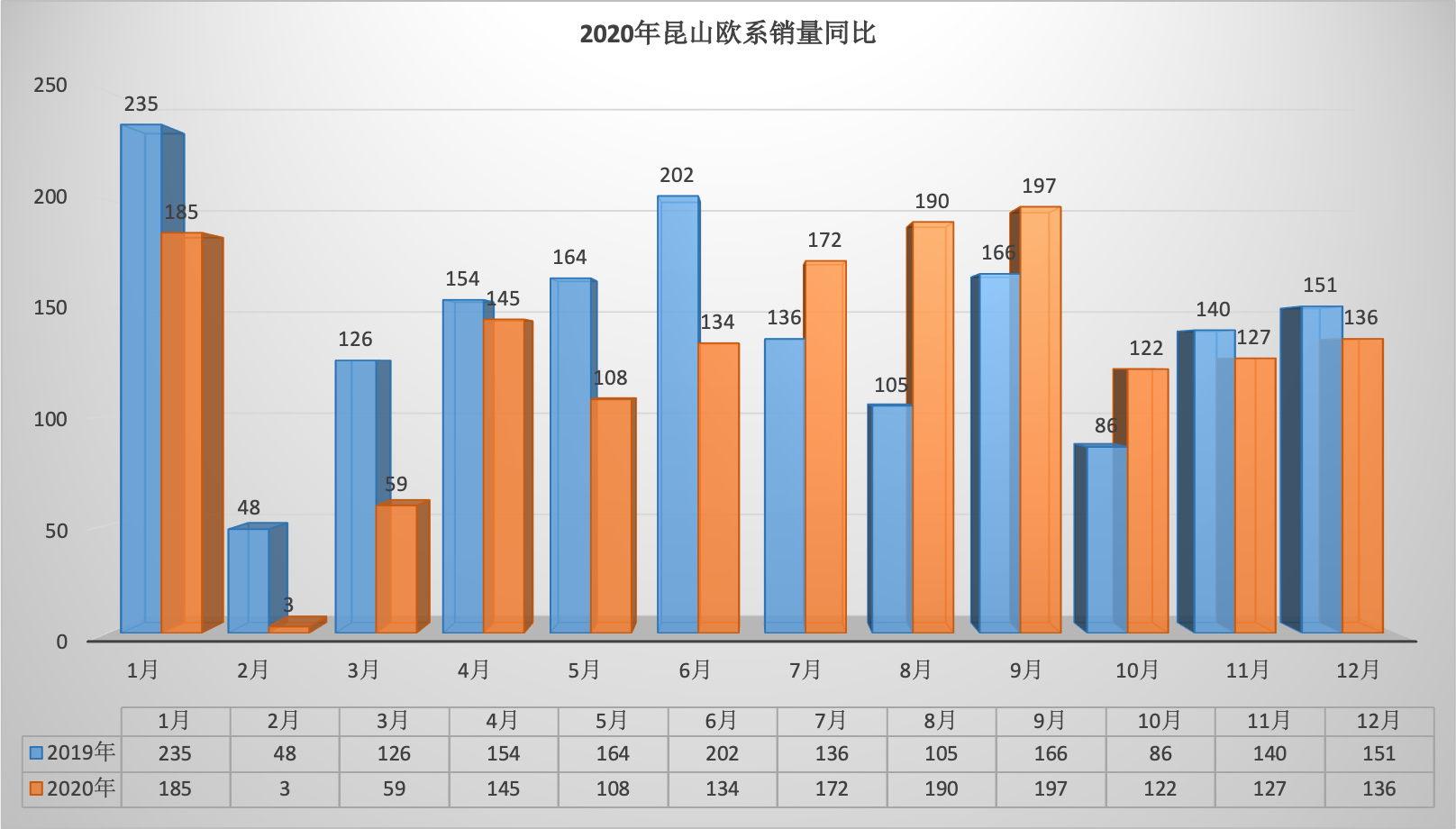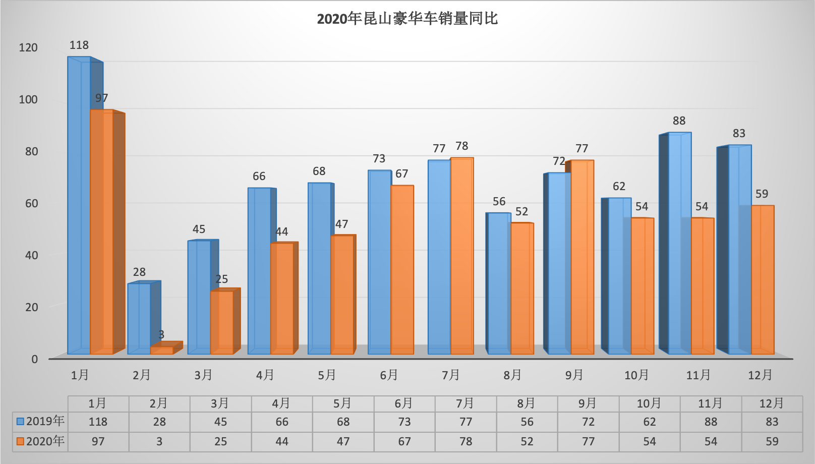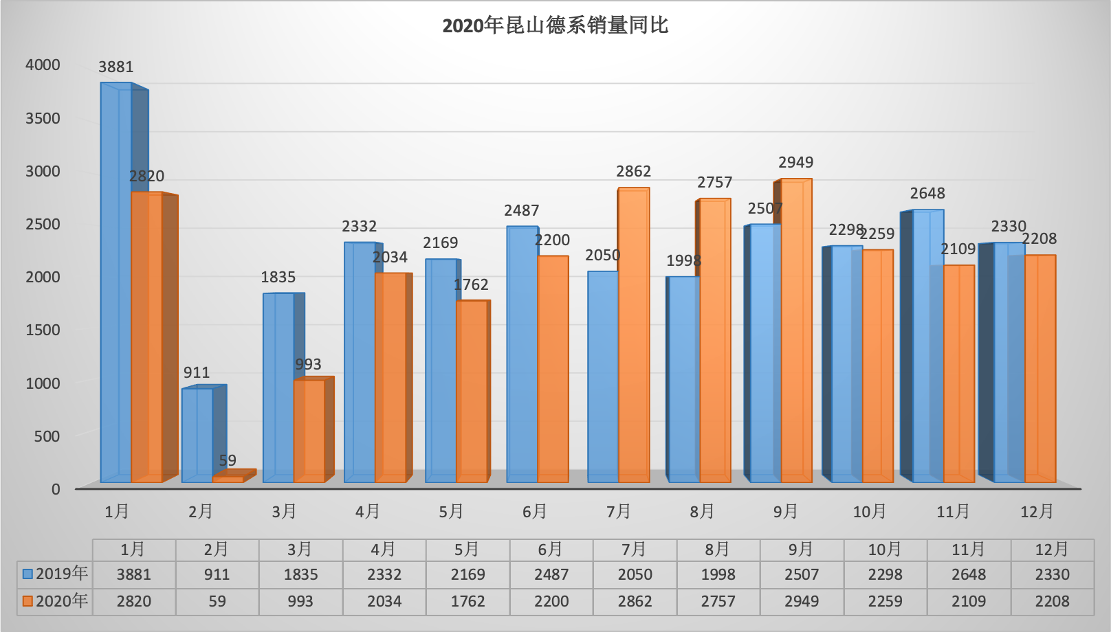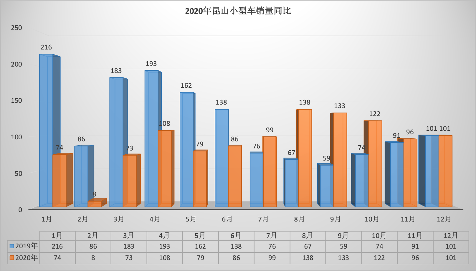 2020年全年昆山狭义乘用车总销量68569台同比下降6.34%。12月昆山狭义乘用车销量6888台,同比下降1.57%,环比增长7.07%。全年销量中自主品牌同比下降5.92%,美系品牌同比增长3.01%,韩系品牌同比下降35.52%,欧系车同比下降7.88%,德系同比下降8.87%,日系同比增长2.51%。