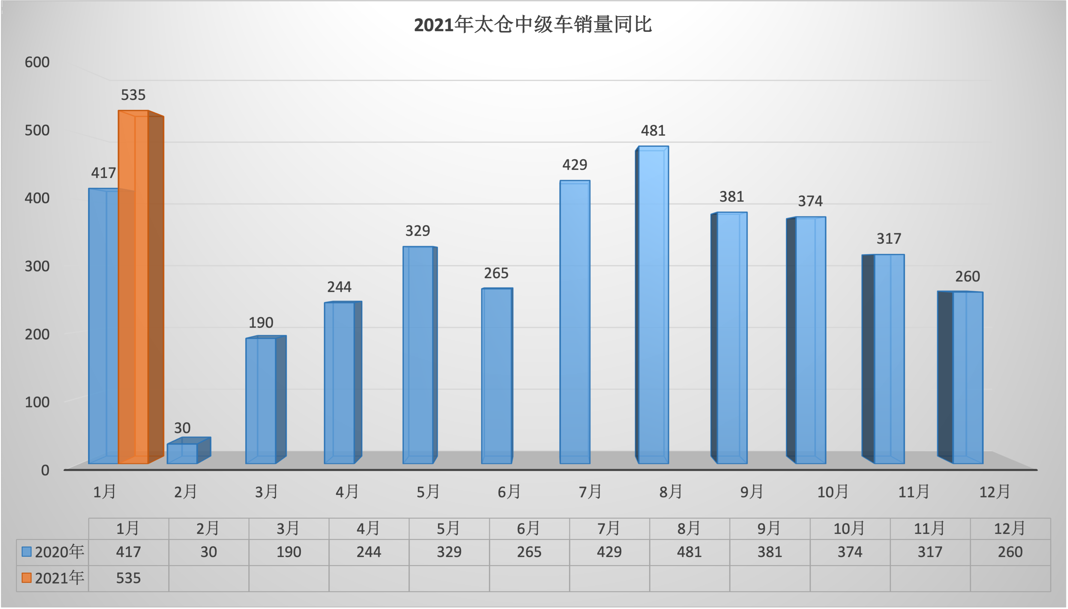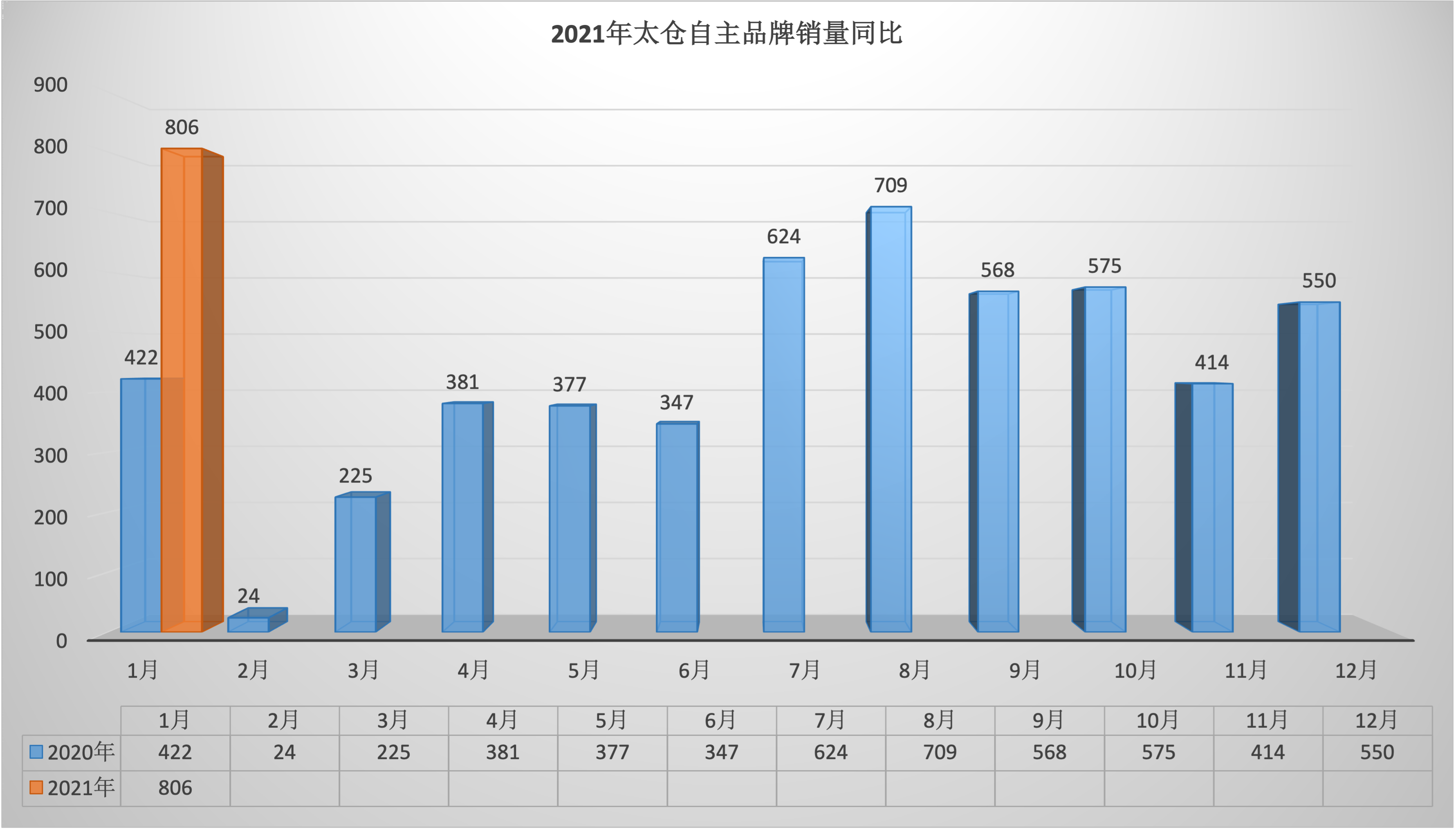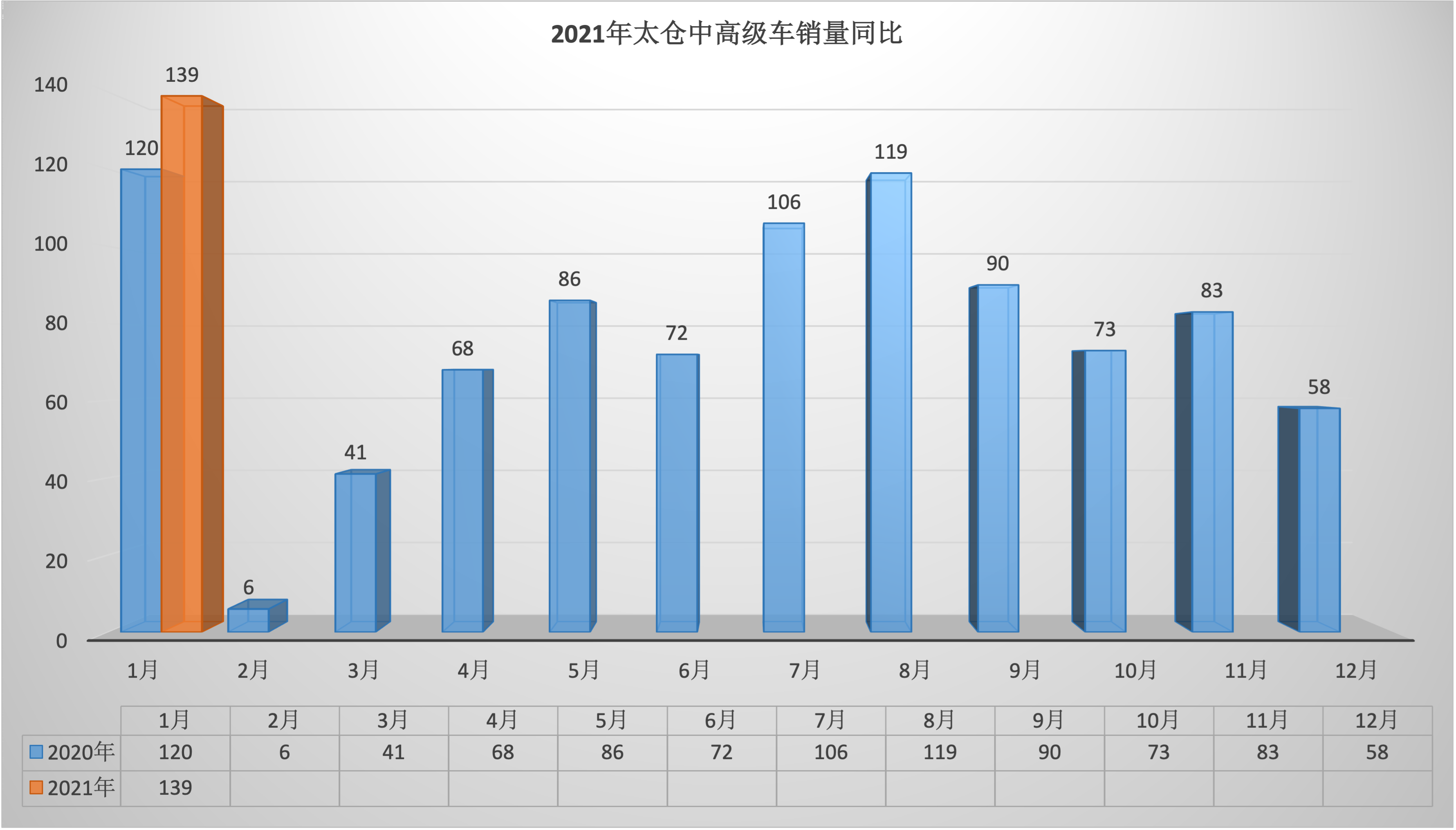 2021年1月太仓狭义乘用车销量3278台同比增长49.20%,环比增长78.54%。其中自主品牌同比增长91.00%,徳系品牌同比增长39.89%,日系品牌同比增长27.24%,美系车同比增长78.14%,韩系同比下降17.86%,欧系同比增长103.85%。