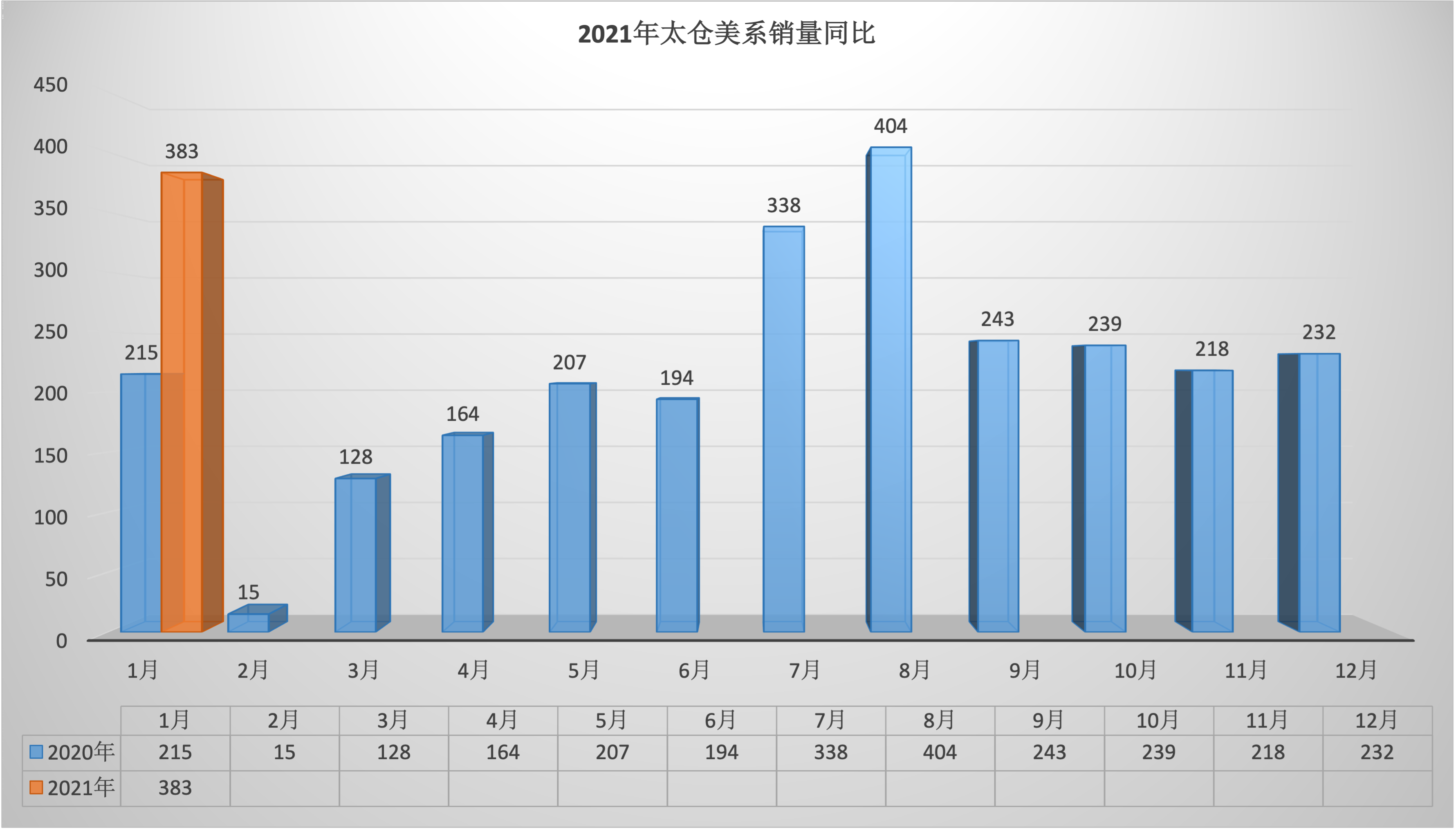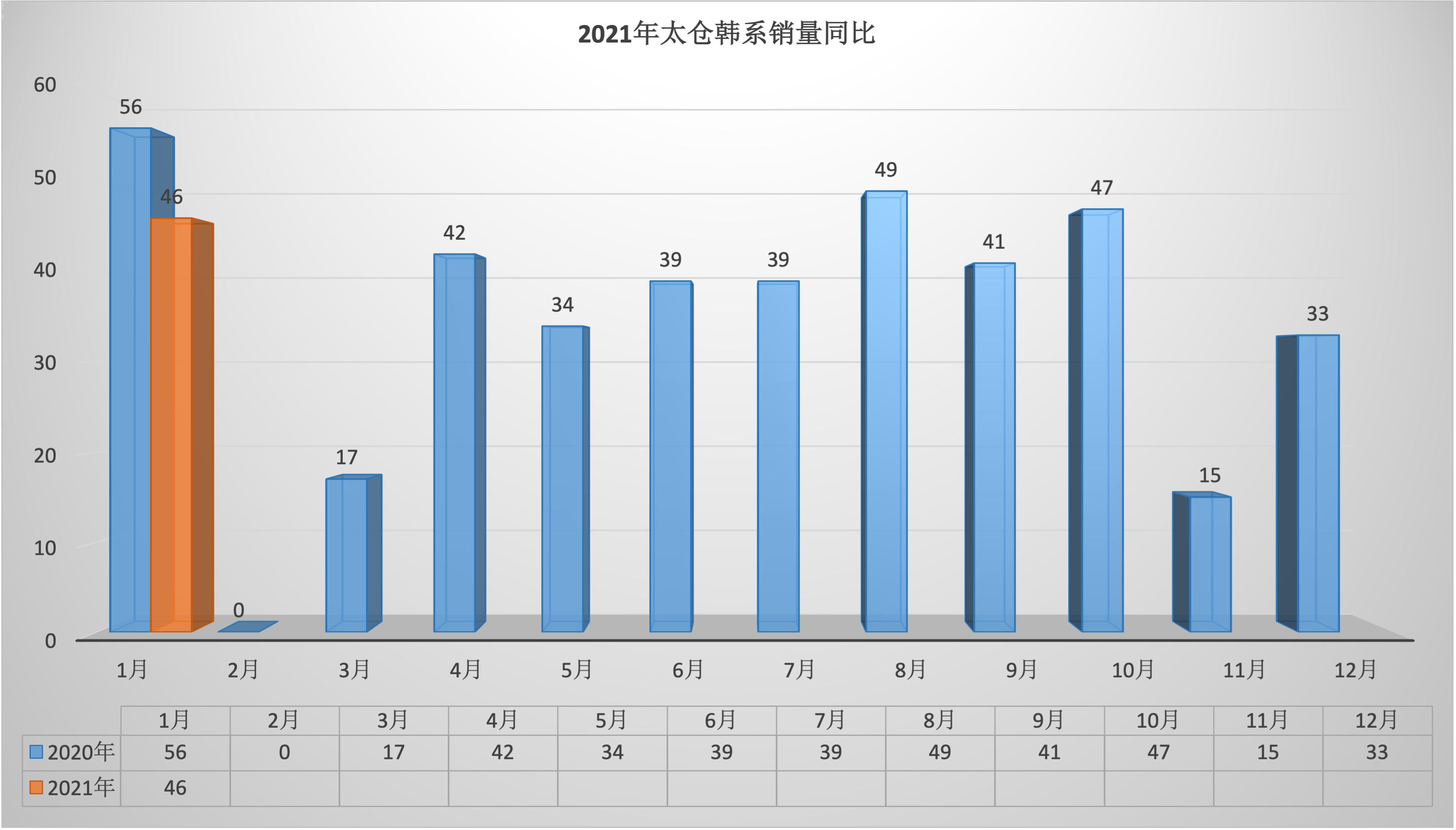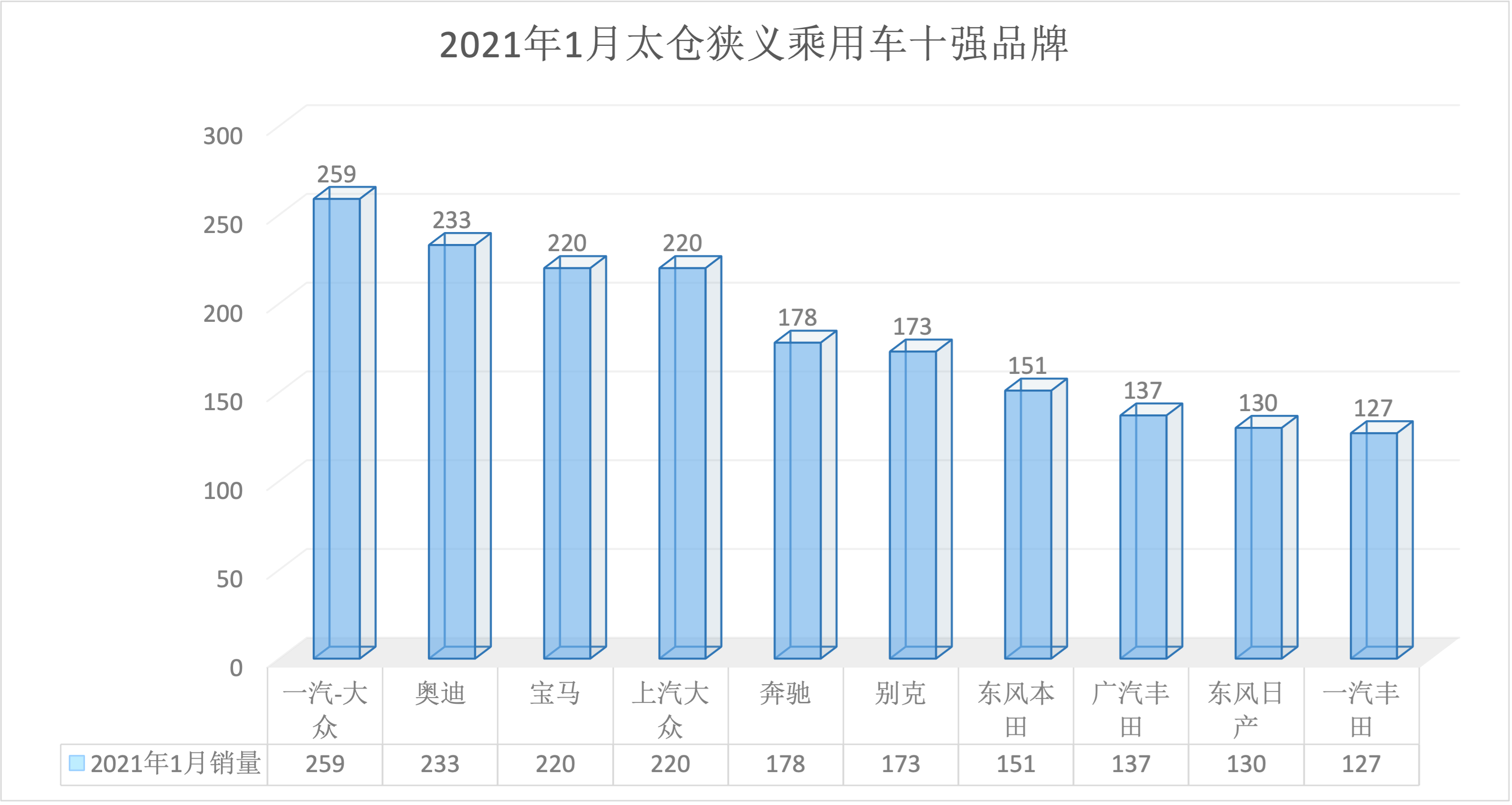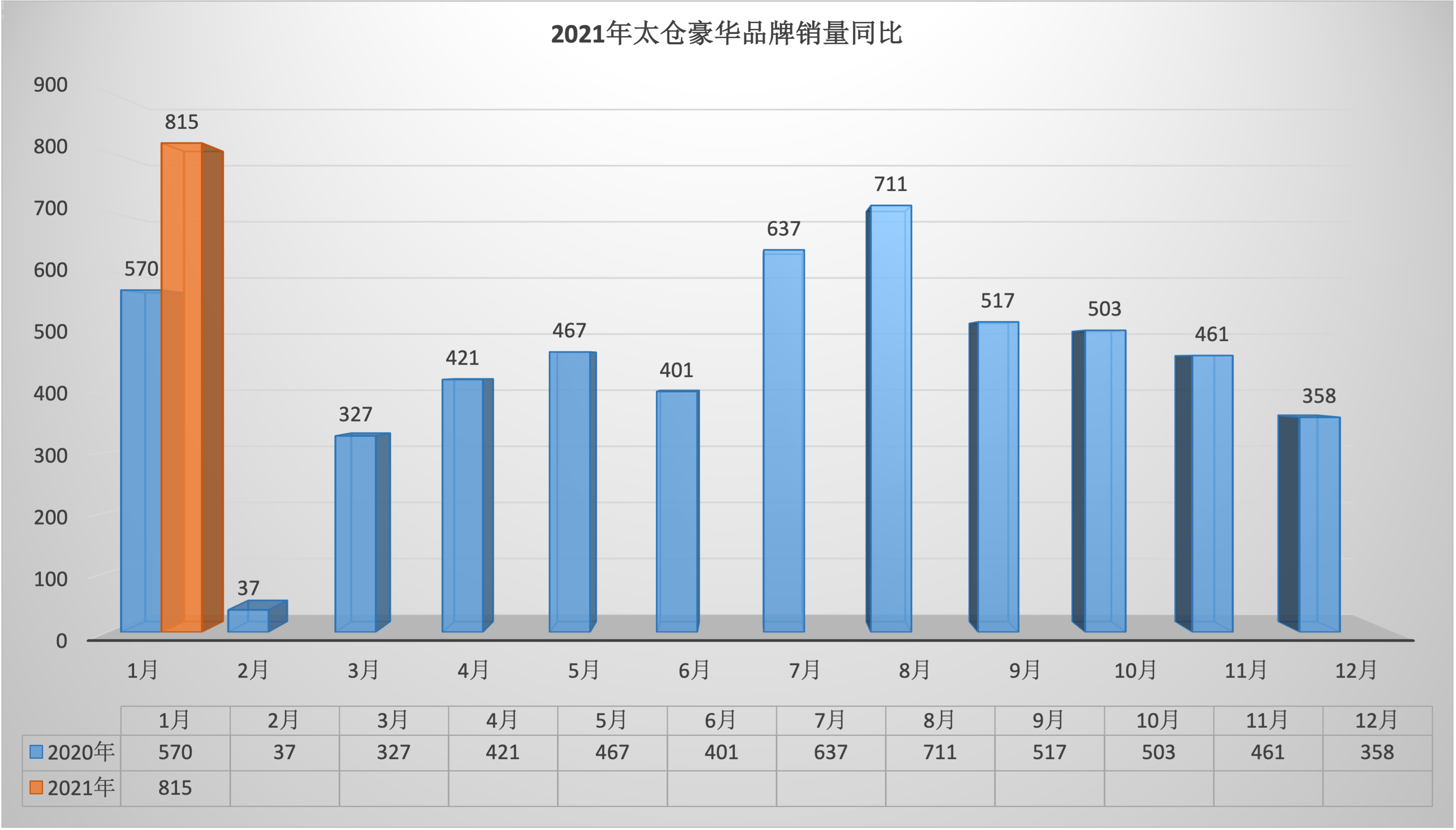 2021年1月太仓狭义乘用车销量3278台同比增长49.20%,环比增长78.54%。其中自主品牌同比增长91.00%,徳系品牌同比增长39.89%,日系品牌同比增长27.24%,美系车同比增长78.14%,韩系同比下降17.86%,欧系同比增长103.85%。