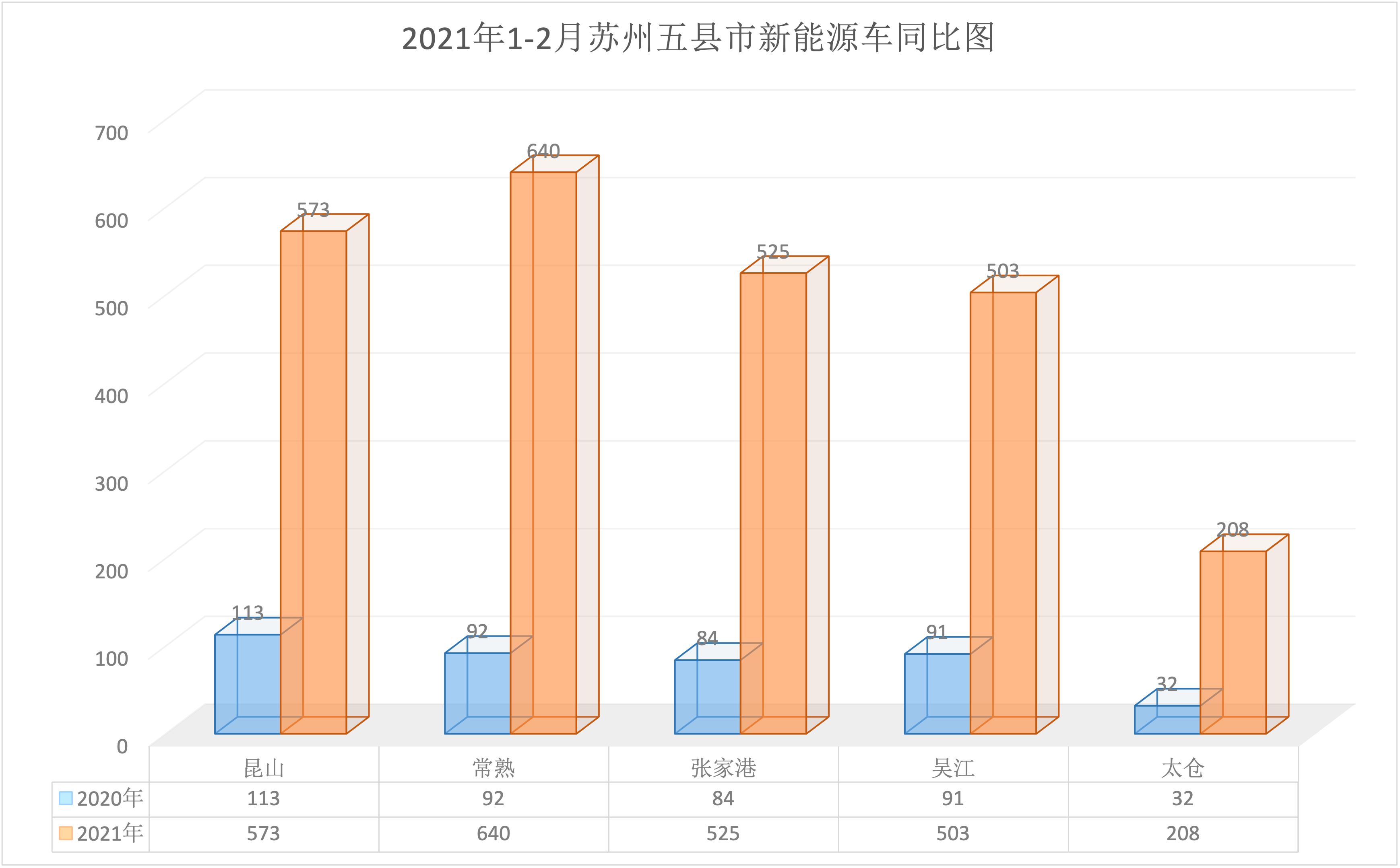 新能源市场都是增长的,其中常熟595.65%增幅排名第一,太仓550.00%,张家港525.00%,吴江452.75%,昆山407.08%。