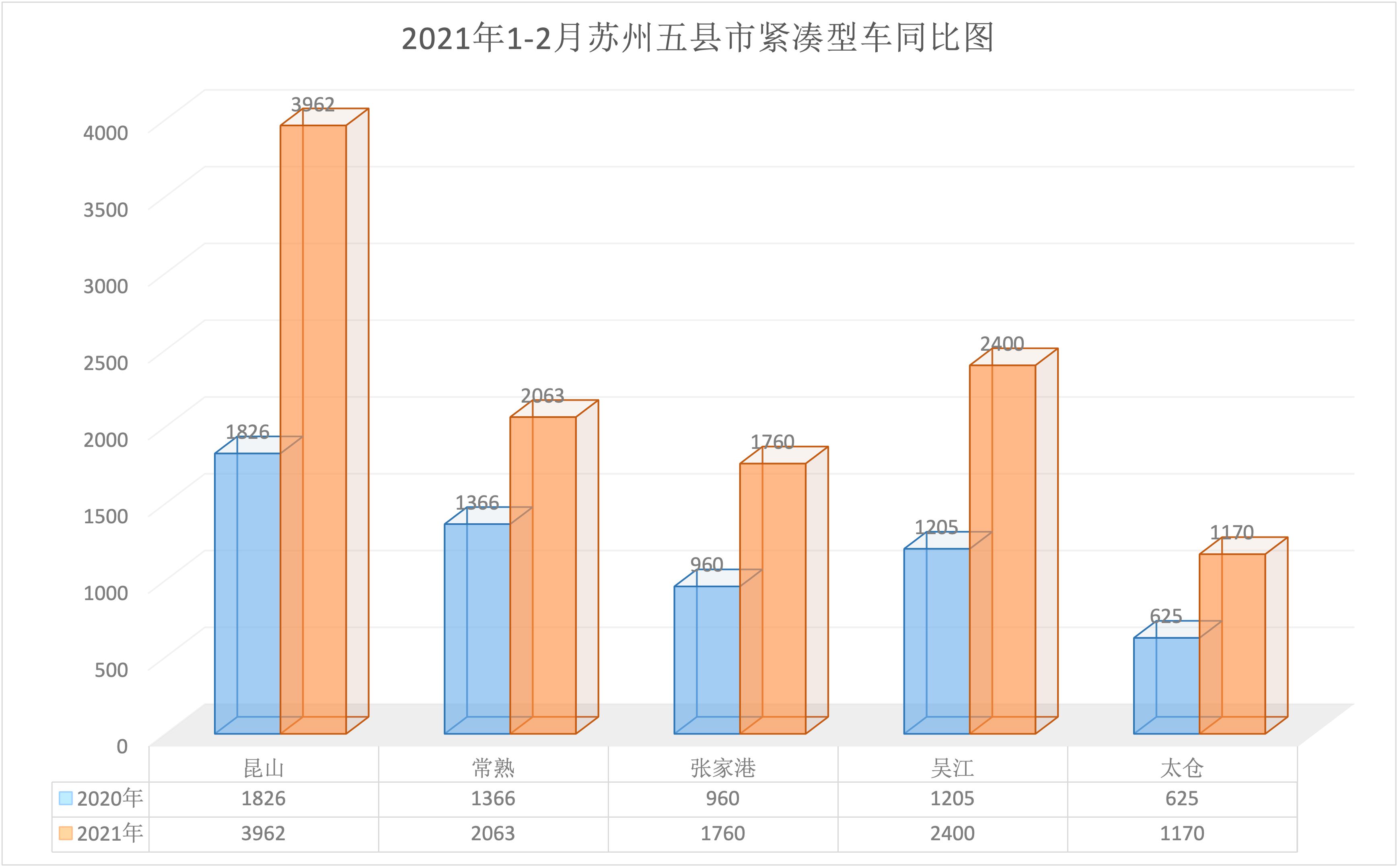 紧凑型车昆山116.98%增速排第一,吴江99.17%,太仓87.20%,张家港83.33%,常熟51.02%。
