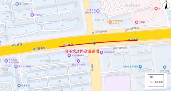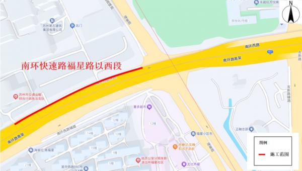 因南环快速路声屏障换新作业需要,经公安交管部门与苏州市市政设施管理处研究协商,拟于2025年11月17日至12月26日每日夜间23时至次日凌晨5时对南环快速路(盘蠡路-福星路)开展声屏障换新作业。