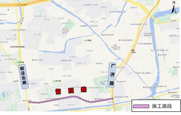 因留园路(桐泾北路-广济路)燃气及自来水管道更新改造施工需要,为保障施工安全和交通安全,根据《中华人民共和国道路交通安全法》有关规定,决定自2025年11月28日-2026年1月25日,对上述道路采取分段封闭交通的临时管理措施,施工路段禁止机动车通行(其余未施工路段仅供内部机动车双向通行),非机动车、行人正常通行。