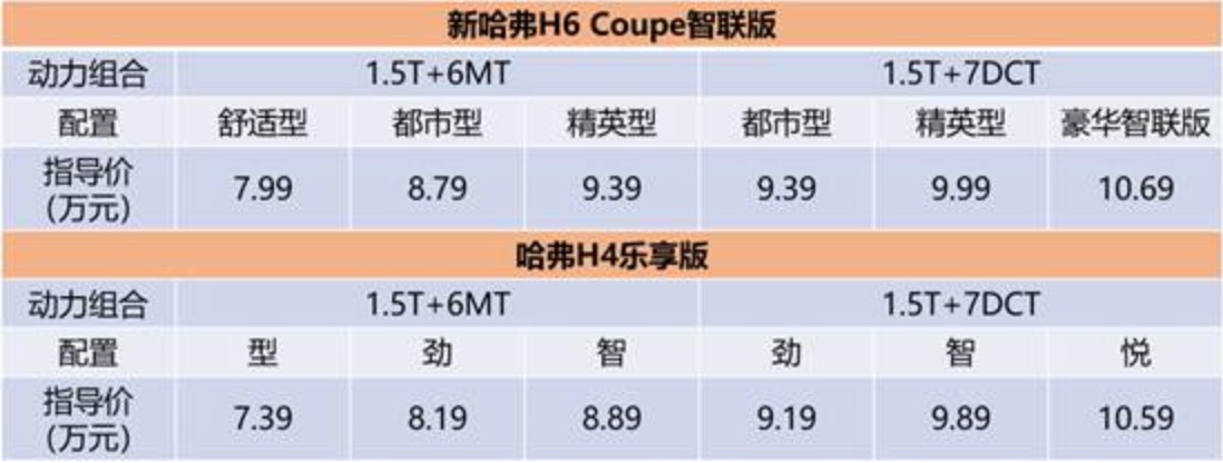 2019年10月23日,哈弗旗下两款新车重磅上市。其中哈弗H6 Coupe智联版(以下简称新H6 Coupe)新增6款车型,官方指导价7.99万-10.69万元;哈弗H4新增乐享版车型,官方指导价7.39万-10.59万元。哈弗“双雄”同时出击,凭借在科技智能、设计做工、高效动力及驾控等方面的卓越产品品质,强势攻占8-10万级市场,顺应消费升级趋势,为客户带来新的高品质之选!