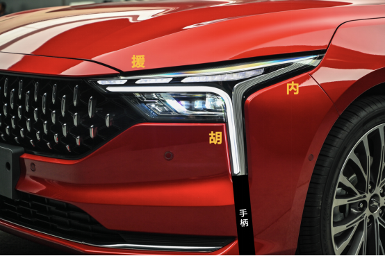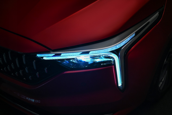 “戈”的设计,弱化了大灯的瞳孔效应,在功能上与格栅的装饰性进行了融合,灯即是格栅,格栅也是灯,通过图案化的设计,打造了具有辨识度的家族式特征。