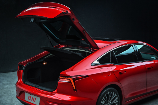 此外尾灯的“戈”设计也非常巧妙,因为全新第三代奔腾B70采用了三厢掀背式的车身设计,当后尾箱升起的时候,原本狭长的两把长戈,就变成了两把尺寸小一号的短戈。这一项充满趣味的设计细节,出现在国产车之上的确值得细细玩味。