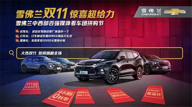 如果你想更深入的体验雪佛兰2T9的迅猛动力并且还没有看过全新上市的雪佛兰开拓者、新探界者及迈锐宝XL等车型,赶紧去经销商展厅进行试驾吧。不但可以亲身感受雪佛兰2T9带来的迅猛动力以及极致操控驾乘体验,还可以参加“雪佛兰双11惊喜超给力”活动,活动期间不但有多重好礼等你拿,双11当天还有特供111台补贴特价车,老客户推荐新客户购车,均可赠送免费保养一次。还等什么?赶快行动起来吧。