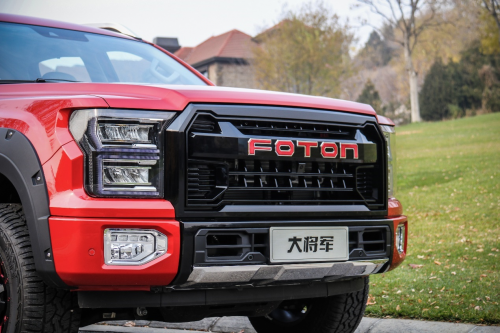 在细项评比过程中,虽然强手如云,但福田皮卡大将军依然在多个方面都展现出领先优势。外观上,福田皮卡大将军要比传统的皮卡更具品质感,前脸采用了美式皮卡惯用的大进气格栅、竖排直立灯组和宽体保险杠设计。整个前脸看起来霸气威武,气场十足。近2米宽的车身结合宽体轮眉的设计也让车身轮廓更具侵略性,全车线条锐利刚硬,使得整车视觉效果更加高端出挑、极具力量感。