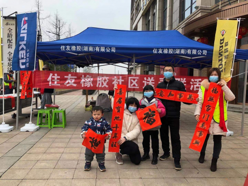 今年春节去哪里?就地过年也挺好!去年不出门就是为疫情防控作贡献,今年过节不返乡还能收到暖心福利!春节到来之际,住友橡胶分别来到常熟和长沙公司附近社区,义务为就地过年的居民送上春联和“福”字,让这个不同寻常的新年一样过得热闹喜庆,这也是住友橡胶连续第三年举办“社区送春联”活动。