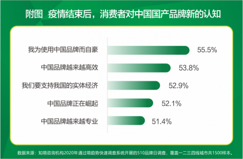 从2020年开始,疫情影响着全球经济的发展,但在独有的“抗疫力”助力下,中国实现了最快复工复产。同时,我国消费者对于本土品牌的认可度暴增,据《“升级与张力”——2020年中国品牌消费行为调查报告》显示,1500个抽样调查中有55.5%的消费者为使用中国品牌而自豪。最为鲜明的标志就是“国潮”一词频频喜提各种热搜,不仅受到国人偏爱,还受到外媒关注,极具“国潮”属性的大热商品也登上头条。