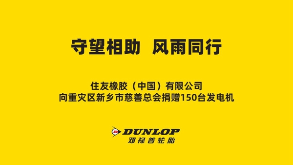 灾难当前,邓禄普轮胎将承担起社会责任,为抗击灾情贡献力量。在此艰难时刻,邓禄普轮胎愿与灾区民众携手共进,风雨同行!