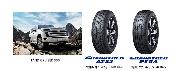 住友橡胶工业株式会社(以下称住友橡胶集团)将为丰田汽车公司新发布的兰德酷路泽300(以下称LC300)提供GRANDTREK AT23和GRANDTREK PT5A两款邓禄普轮胎产品作为原厂配套轮胎。