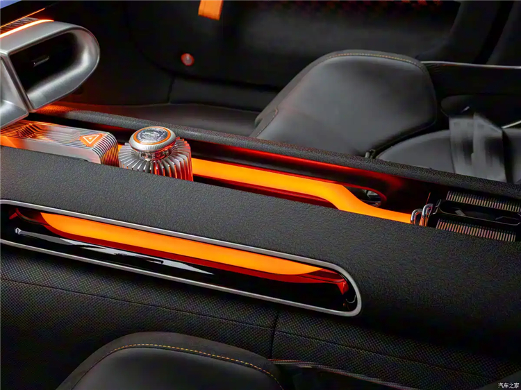 内饰方面,新车内饰极具科技感,中控采用贯穿式的双联屏,仪表等行车信息均集成于此。车辆方向盘造型采用类似蝴蝶造型样式,同时在其两侧集成了旋钮和物理按键。此外,车辆的中控仪表和空调出风口的造型均与车头的大嘴造型相呼应,内饰颜色也采用橙色点缀。车辆门板设计十分简洁,车门拉手预计为轻量化的条带设计。