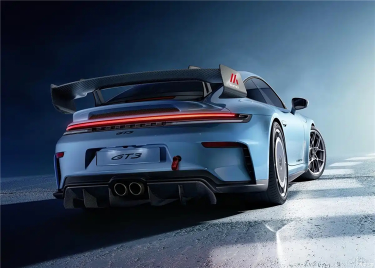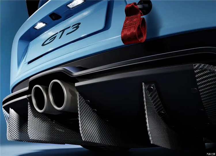 车尾部分,新车配备了全新的大尺寸鹅颈式扰流板,并搭配了一个小鸭尾;尾灯组采用贯穿式的设计,后包围两侧的通风开口通道进行了加宽和贯通,并配备全新的尾部扩散器,排气依旧是中置双出布局。
