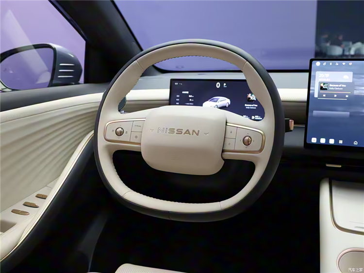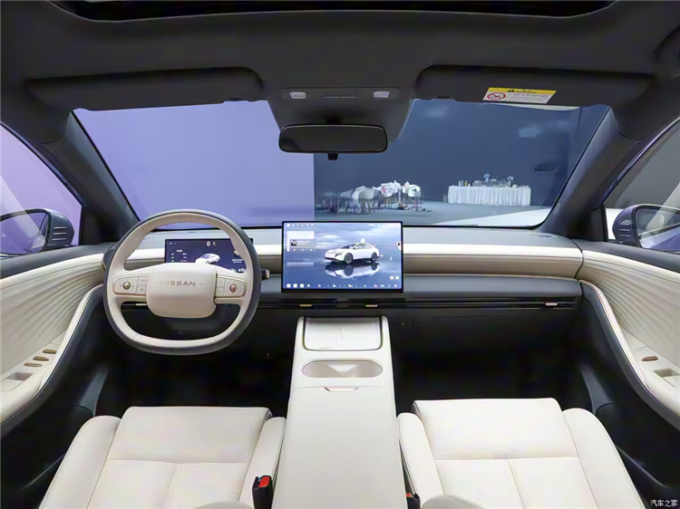 内饰极简风格,仅提供仪表屏和悬浮式中控屏,15.6英寸2.5K中控屏,搭载高通骁龙8775芯片,内置NISSAN OS系统,提供平板式交互,融合科大讯飞星火大模型+DeepSeek,高德深度定制版导航,还提供无麦K歌、HiCar/CarPlay/CarLink互联、6扬声器音响、50W风冷无线快充、智能磁吸香氛机、螺栓孔手机支架。
