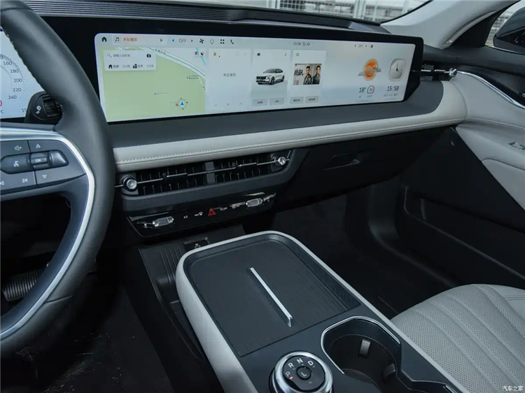 内饰基本延续现款车型设计,保留了中控台上方不规则的设计元素。车内配备贯穿式27英寸4K大屏,12.3英寸液晶仪表,搭载座椅通风加热、50W无线快充等功能。变化来看,新车空调出风口下方增加了实体按键,副仪表台区域调整为悬浮式岛结构,前部增加了手机无线充电面板,搭配旋钮式换挡机构及开放式杯架。